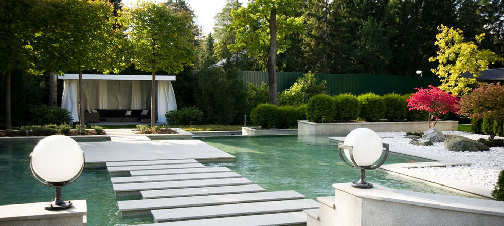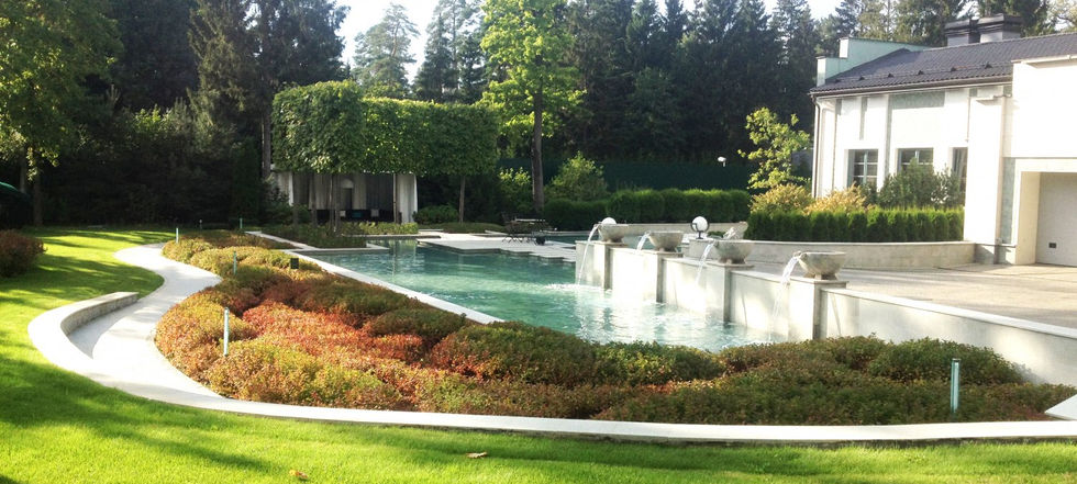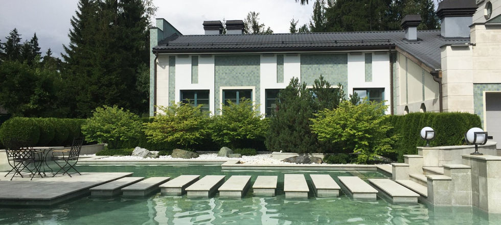 Архитектура загородного дома, который приобрели наши заказчики, ближе всего к стилю Минимализм и владельцы хотели создать очень цельный и современный ансамбль архитектуры и прилегающего сада.