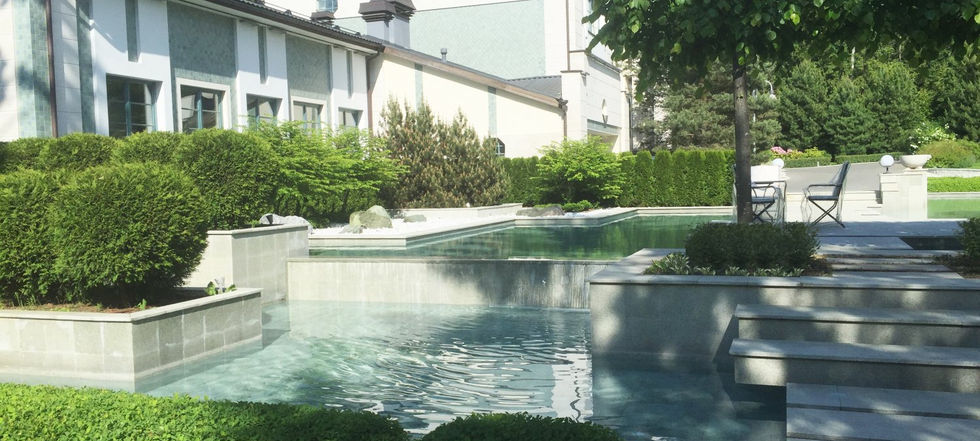 Композиционным ядром парадной части является дом с большим 250-ти метровым декоративным водоемом, стилистически дополняющие друг друга.